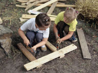 Materialien Lehm ( z.B. zum Bau von einem Lehmbackofen ), Holz ( z.B. zum Bau von einem Holzschiff ) und Weide sowie mit den